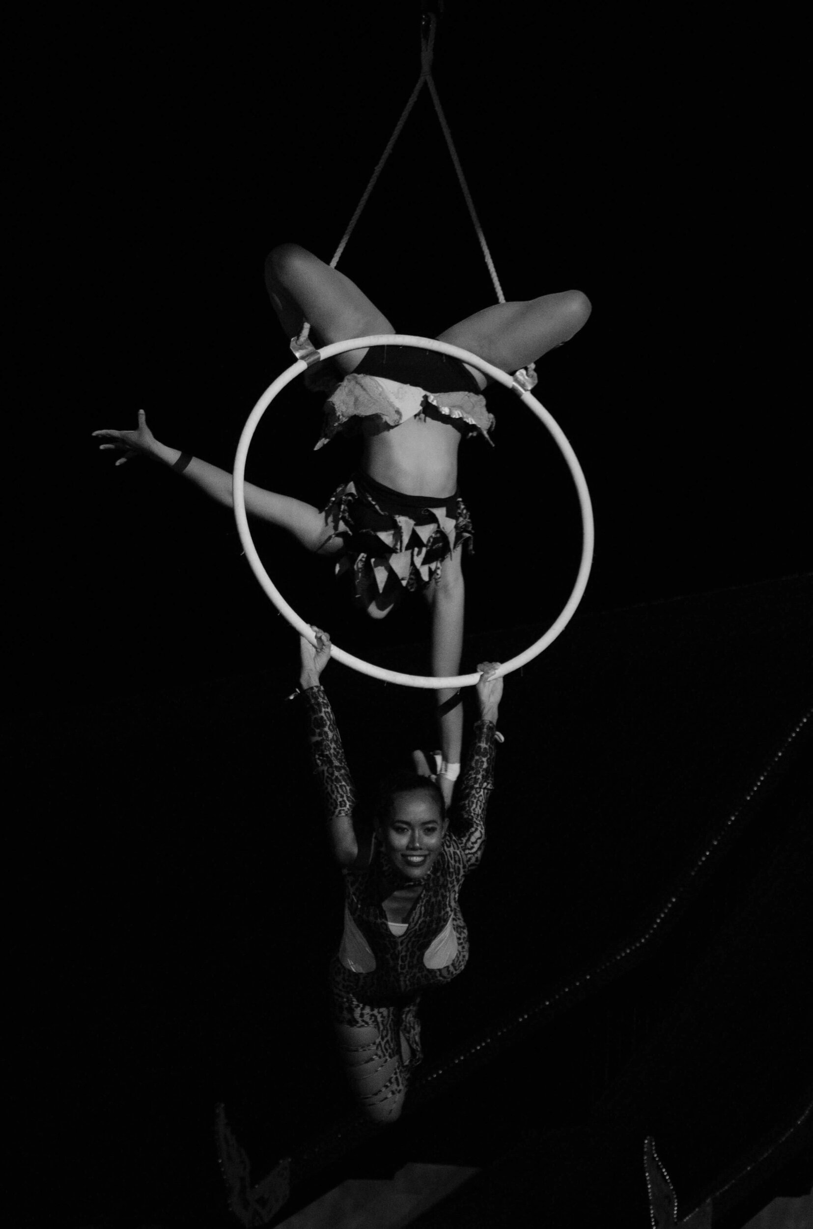 Why circus? Because it’s fun and amazing! It’s something that I never thought I could do in my life. I find it really amazing and mind-blowing at the same time to see how circus performers can fly really high while holding on to a single trapeze bar without fear. Or when their body moves so gracefully on a hoop or silk. That amazing drop they do when they perform aerial silk or hammock on the stage just under the spotlight…it’s so beautiful and breathtaking like falling in love at first sight. That was how I discovered my passion for circus.